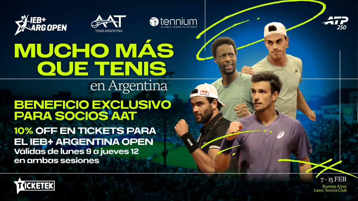Se acerca una nueva edición del IEB+Argentina Open ATP 250 y con tu Membresía AAT Fan o Full podrás adquirir tus tickets con un 10% de descuento a través de la plataforma Ticketek.